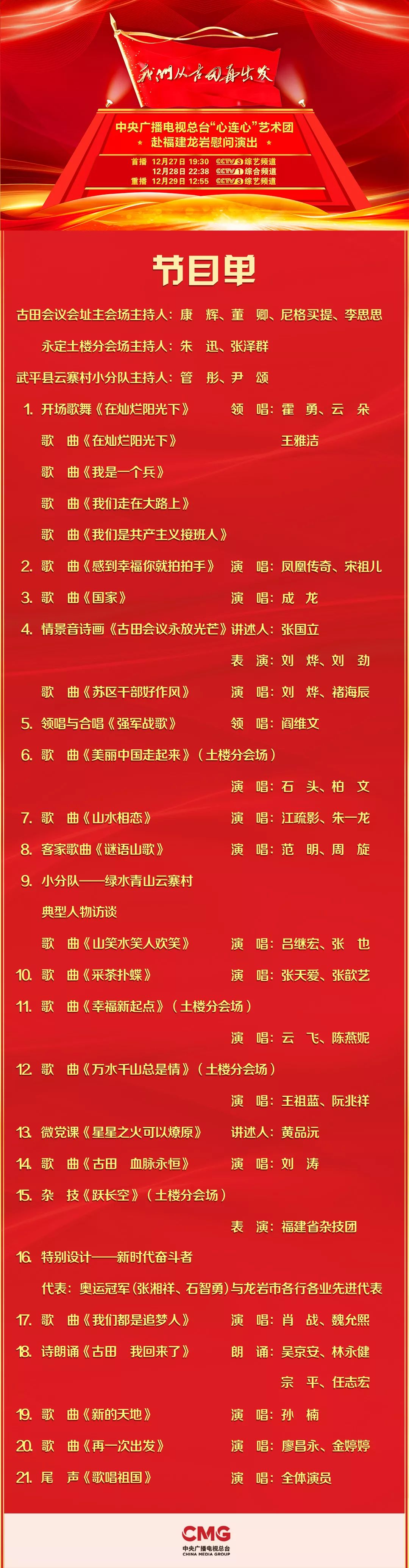 昨晚(27日)七点半,央视“心连心”艺术团古田慰问演出《我们从古田再出发》在央视3套首播,在龙岩广大干部群众中引起广泛关注和热烈反响。